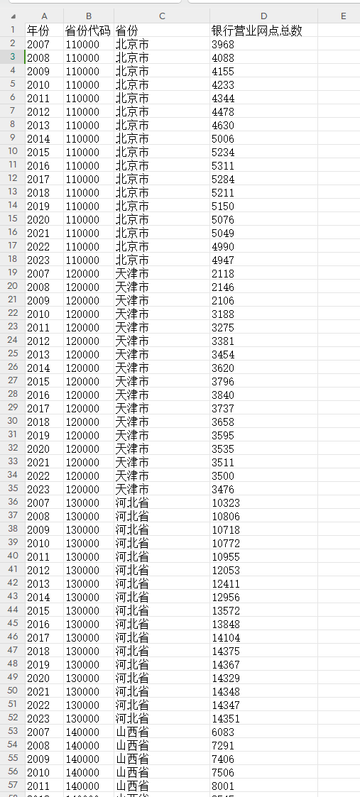 各省银行网点结构2007年-2023年