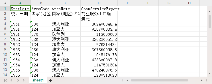 统计日期 国家(地区)代码 国家(地区)名称 商业服务出口额