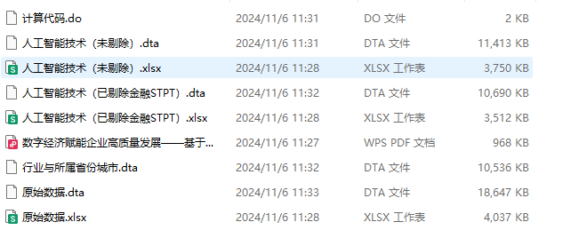 - 文件格式:Dta格式(使用Stata打开)、Xlsx格式(使用Excel打开)