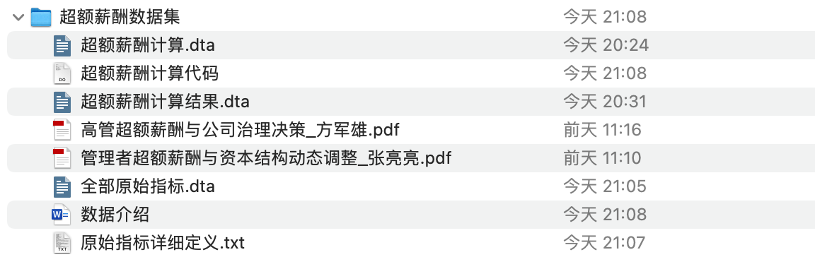 现有文献中关于高管薪酬通常采用绝对薪酬和超额薪酬两个维度来进行衡量,本帖将可能需要的所有指标与数据进行汇总,并同时将所有原始变量和数据计算代码附上,以方便科研使用。