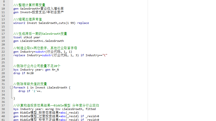 包含Biddle模型和Chen模型使用分年度分行业回归,剔除每年每个行业的观测值小于20个的样本