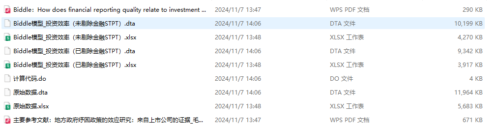 - 两个版本:投资效率Biddle模型(未剔除金融STPT)、投资效率Biddle模型(已剔除金融STPT)