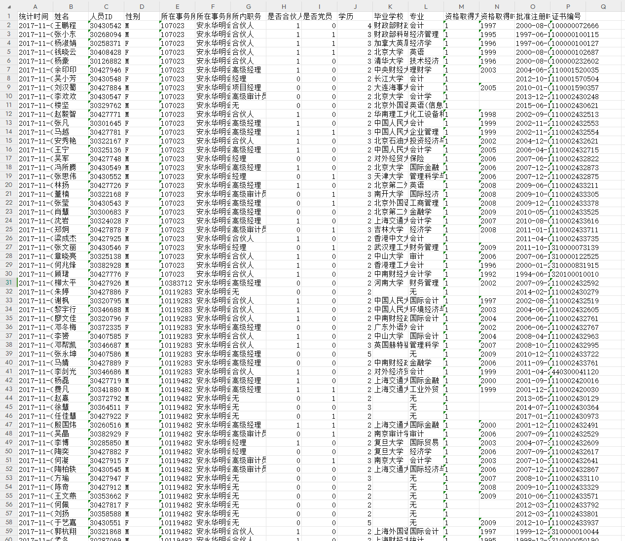 AccountingFirm [所在事务所] - 截止统计时间该人员所在事务所。