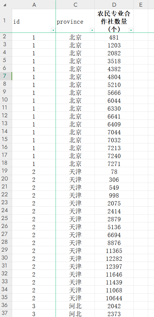 1.数据名称:省级农民专业合作社数量 无缺失,内附长、宽两种面板格式