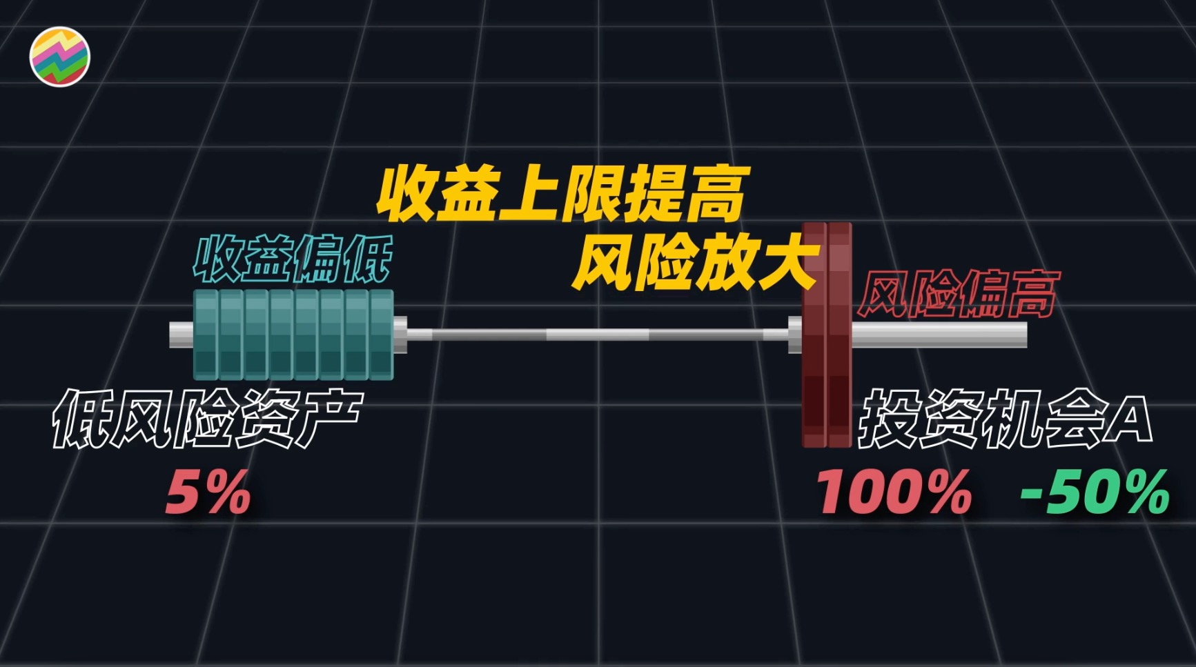 例如将100万用于投资,只买低风险资产则每年收益5%,即获利5万元,另有投资机会A,可能带来100%收益,也可能有50%的亏损风险。
