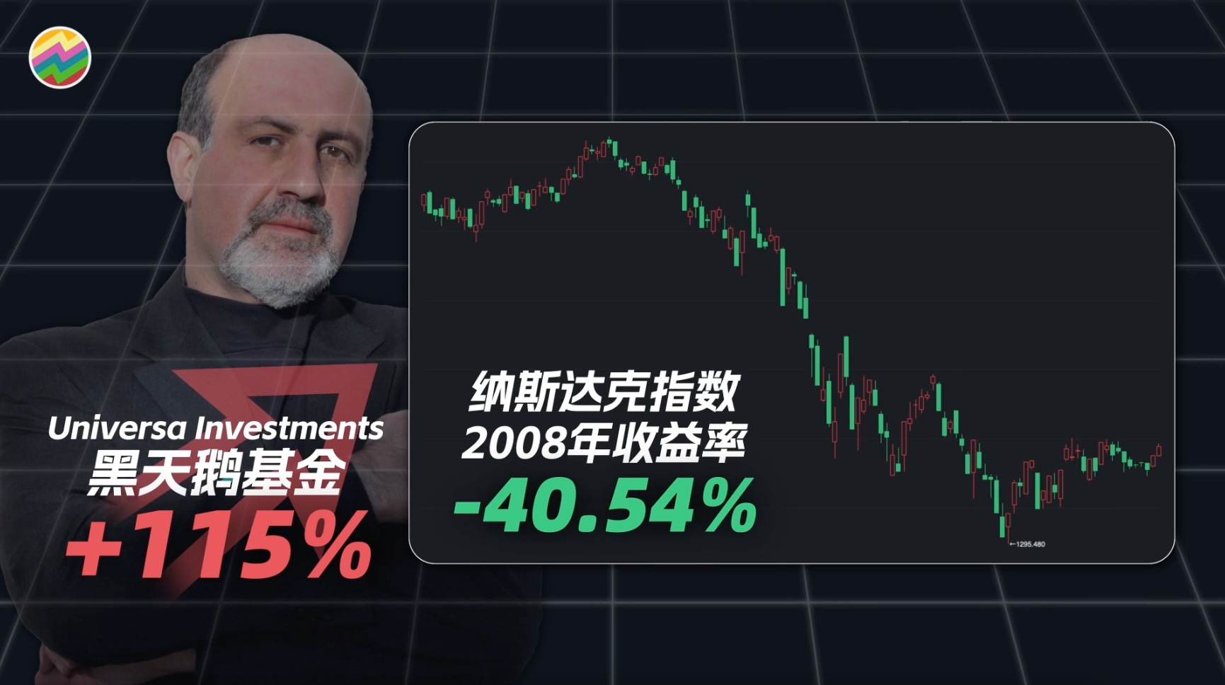 在实际交易中,他的基金也在2008年金融危机期间,借助杠铃策略跑出了115%的佳绩。