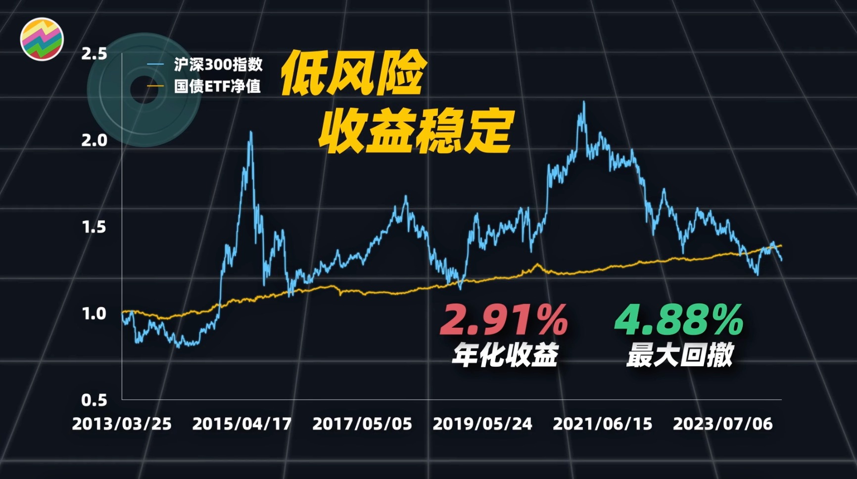 其中一端我们使用了国债ETF,2013年至今它的年化收益是2.91%,但最大回撤仅有4.88%,