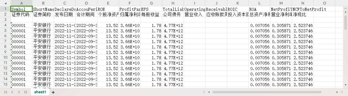 证券代码 证券简称 发布日期 会计期间 个股净资产收益率 归属净利润 每股收益 公司债务 营业收入 应收账款周转率 投入资本回报率 总资产净利润率 营业净利率 净现比