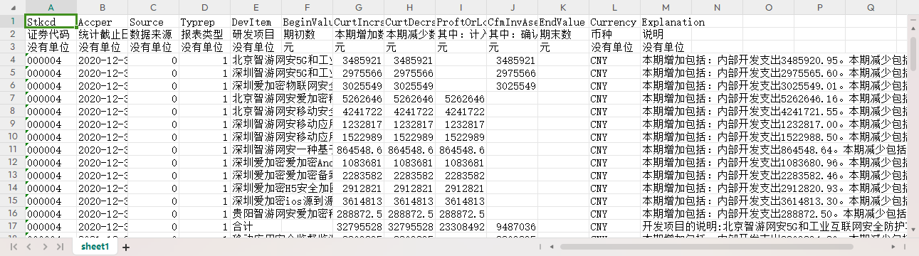 证券代码 统计截止日期 数据来源 报表类型 研发项目 期初数 本期增加数 本期减少数 其中:计入当期损益 其中:确认为无形资产 期末数 币种 说明