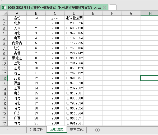 2000-2023年31省建筑业集聚数据(区位熵过程和参考文献).xlsx