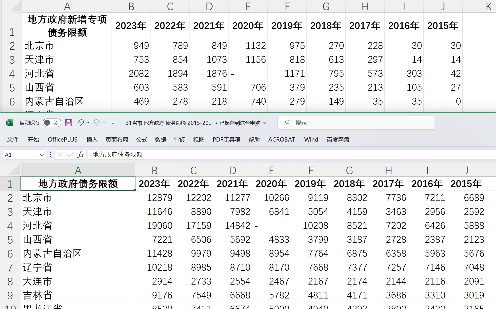 31省市 地方政府 债务限额 2015-2023.xlsx