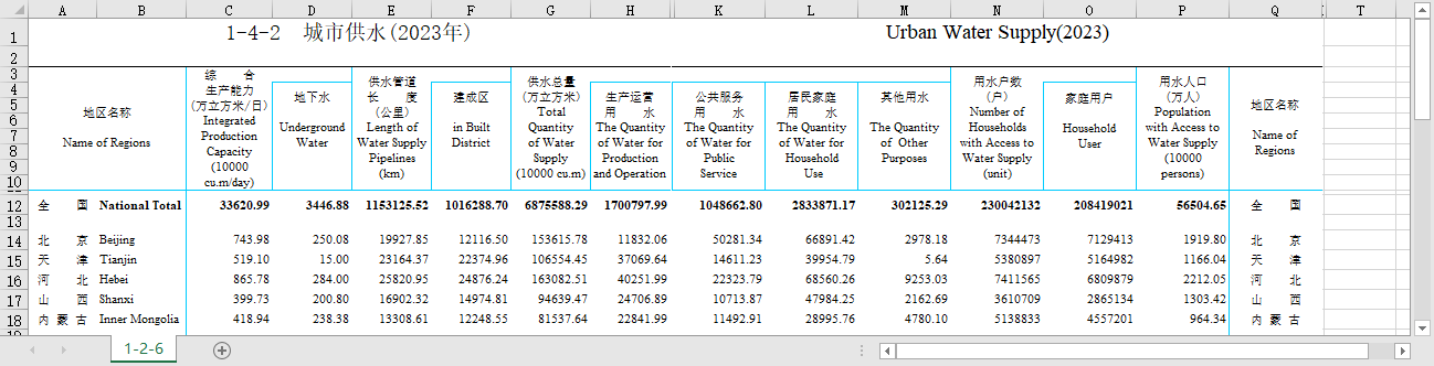 全国32个省份分省城市供水(2006-2023)地下水综合生产能力供水总量生产运营公共服务居民家庭用水等