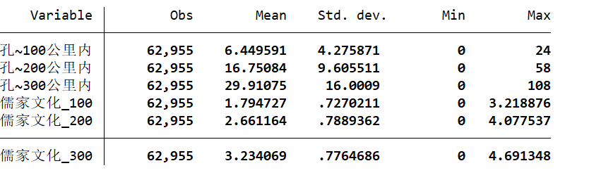 【孔庙数量_100、200、300]【孔庙数量_100、200、300]【儒家文化_100、200、300】上市公司100、200、300km 半径范围内孔庙数量加一取自然对数