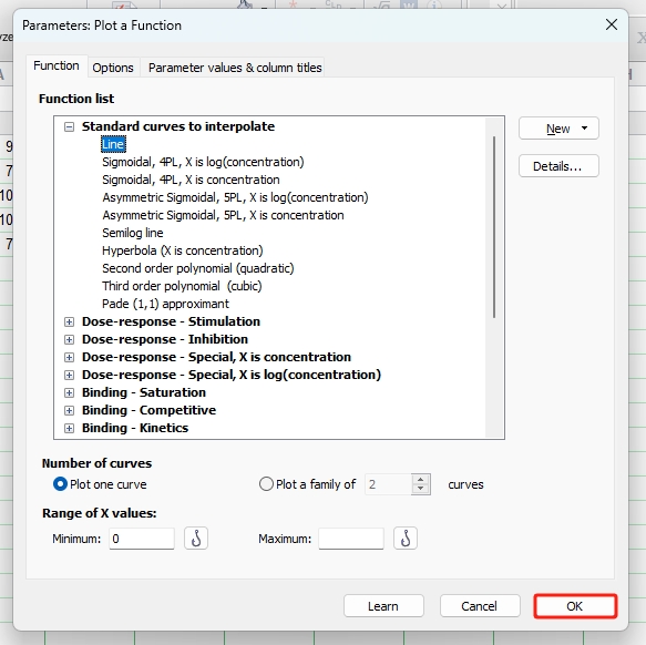 - Interpolate a standard curve:从标准曲线解析插值