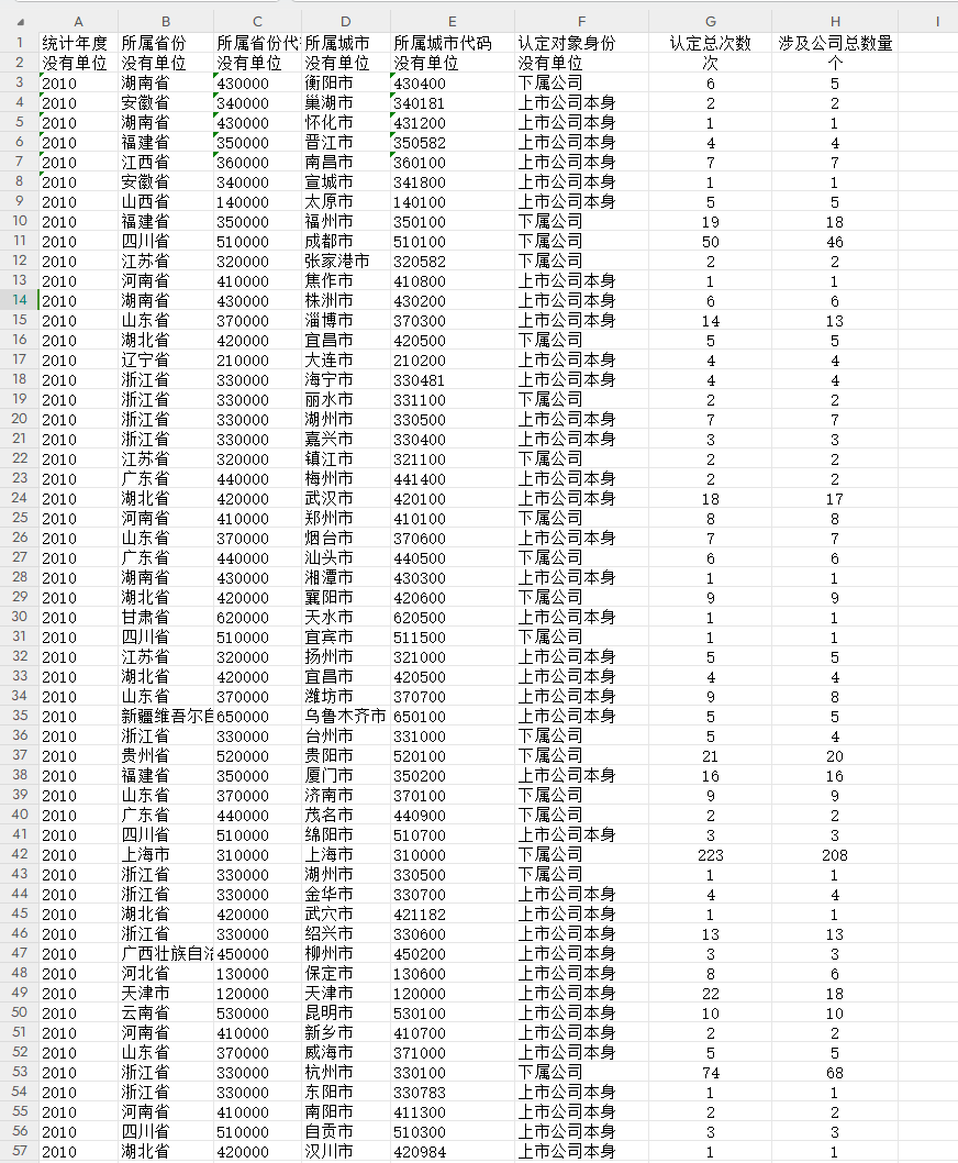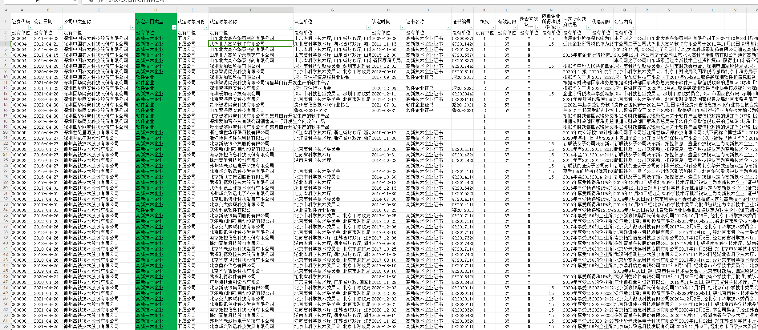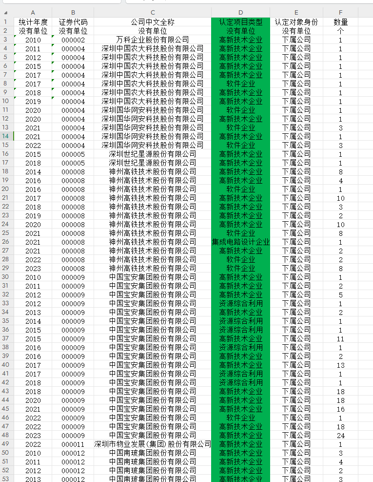 2010-2023年所有上市公司资质认定信息数据,共4409家企业54428条数据。