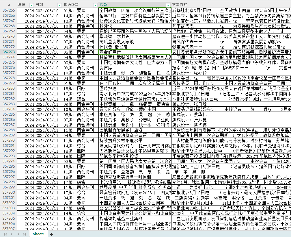 相关数据及指标:年份、日期、报纸版次、标题、文本内容。