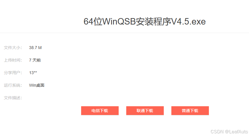 原安装问题打开浏览器,在各大搜索引擎搜索“WinQSB”,之后下载压缩包。