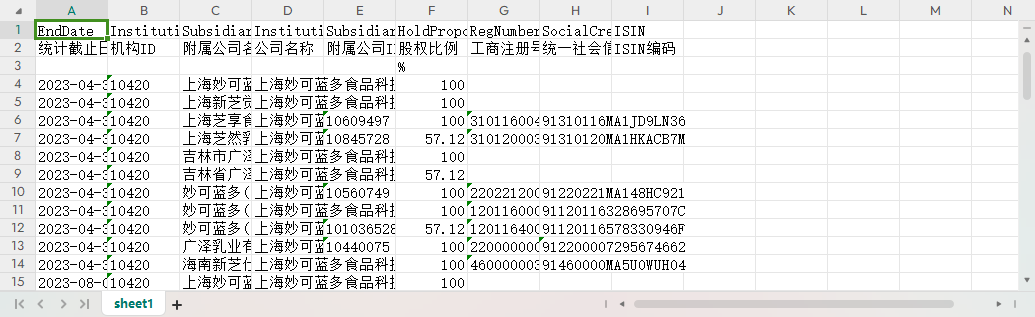 统计截止日期 机构ID 附属公司名称 公司名称 附属公司ID 股权比例 工商注册号 统一社会信用代码 ISIN编码