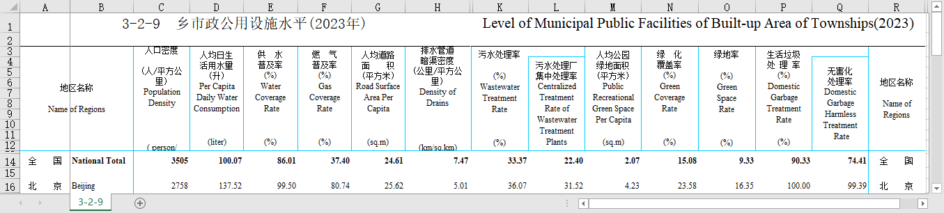 3-2-9 全国32个省份乡市政公用设施水平(2007-2023)人口密度供水燃气普及率污水处理率人.zip