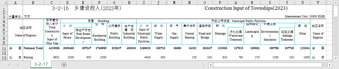 全国32个省份乡房屋市政公共设施园林绿化建设投入(2007-2023)房地产开发住宅公共建筑供水燃气集中供热道路桥梁