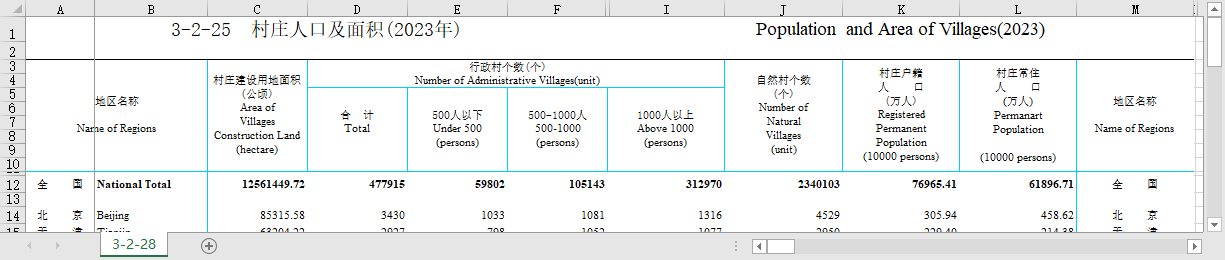 3-2-25 全国32个省份村庄人口及面积(2007-2023)建设用地面积户籍常住人口乡村行政村自.zip