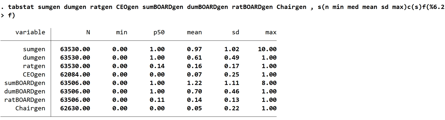 4. 女性董事长:董事长是女性为1,否则为0.