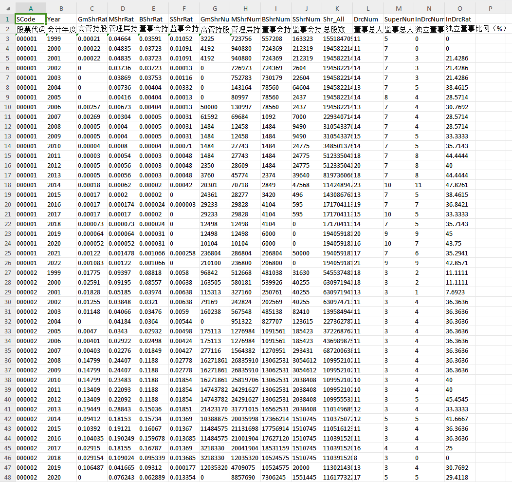 GmShrRat[高管持股比例(%)]-高管持股比例占公司总股数的比例