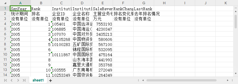统计期间 排名 企业ID 企业名称 主营业务收入 排名变化情况 去年排名情况