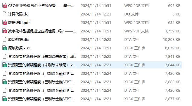 - 文件格式:Dta格式(使用Stata打开)、Xlsx格式(使用Excel打开)