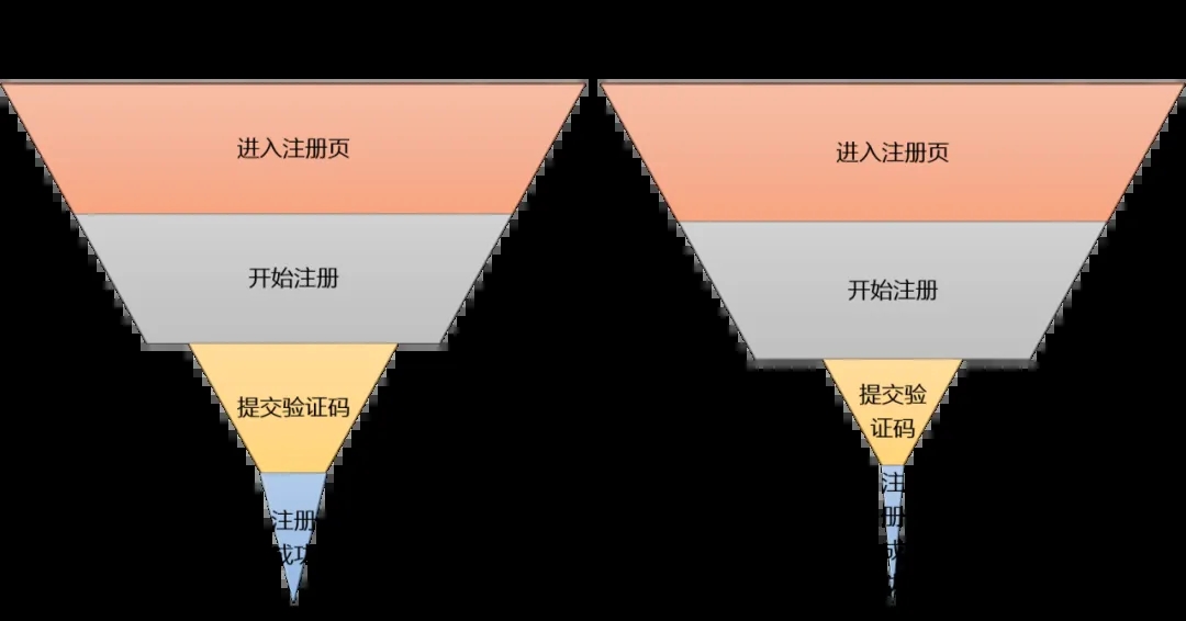 案例:某电商平台,按“进入注册页-开始注册-提交验证码-注册成功”的路径设置了一个四步转化漏斗,通过数据分析发现,第二步到第三步的转化率较低,很多用户在该环节流失,进而导致最后注册成功的用户数大幅减少,定位到问题环节是在“开始注册”-“提交验证码”环节。