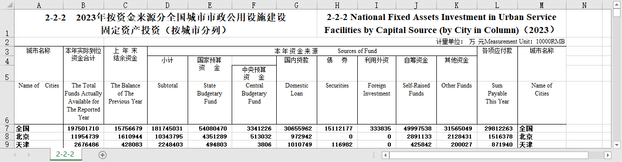 2002-2023年全国700多个地级市县级市按资金来源分城市市政公用设施建设固定资产投资(按城市分列)国家预算国内贷款债券利用外资等
