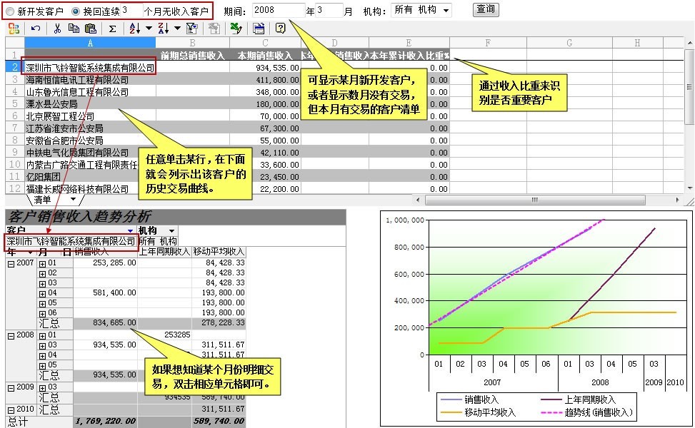 2、哪些客户连续数月没有收入或者很少的收入?