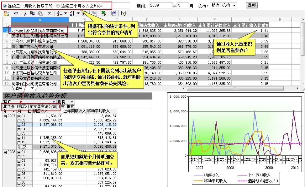 1、哪些客户连续几个月收入持续下降?