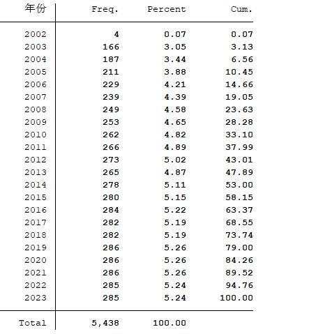 包含excel和dta格式数据量情况