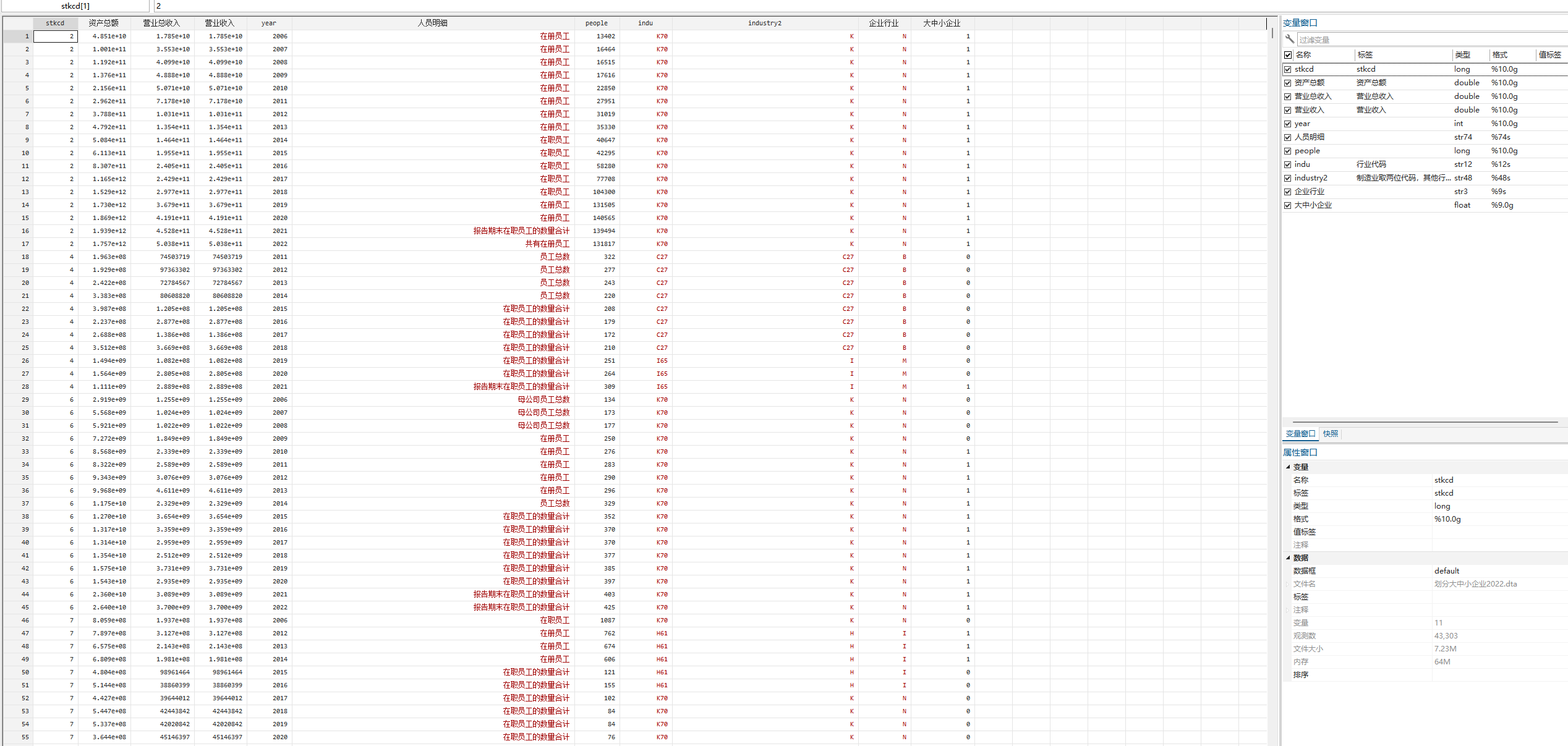 最终结果:将大企业赋值为1,中小企业赋值为0