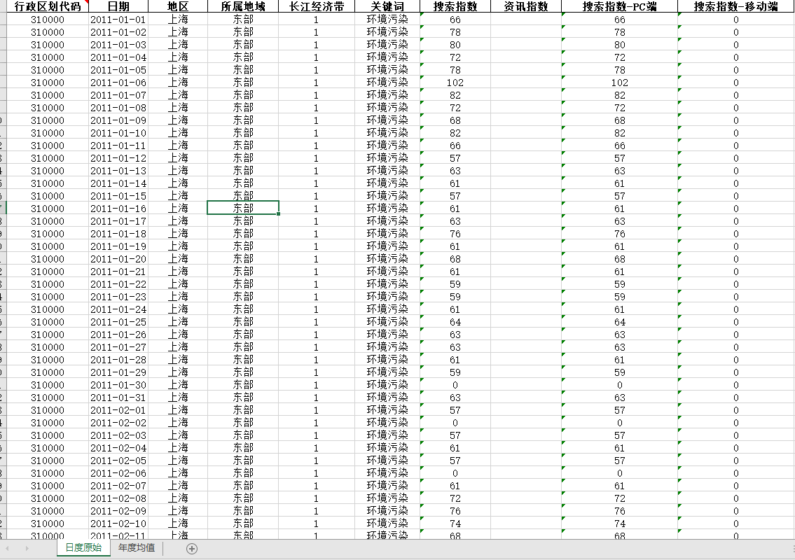 【2011-2023】公众环境关注度-295个地级市+31个省级/日度+年度