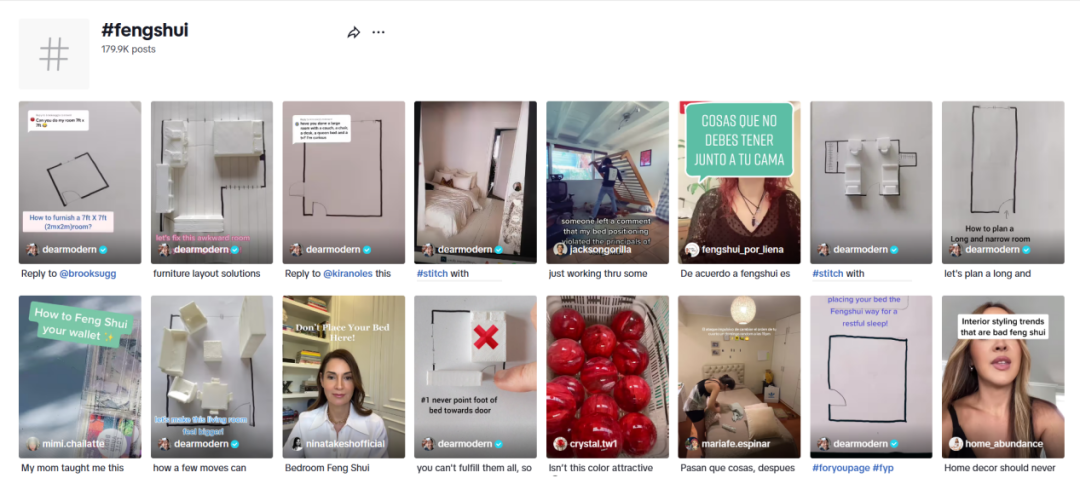 在海外短视频平台tiktok上, #fengshui这一标签下有多达17万条视频作品,视频累计观看次数已高达21亿次,而#WitchTok标签下的视频观看次数更是超过了435亿次。