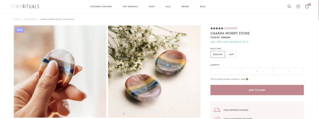 水晶宝石独立站Tiny Rituals,在今年7月份的时候吸引了近80万名的访问者,旺季时候甚至能吸引百万流量进入。站内一些超过100美元售价的商品,依旧有不少销量,可见海外消费者也吃“玄学”的这一套把戏。