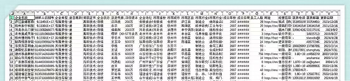全国各省份地级市地市州区县高新技术企业数据1946-2023员工人数联系电话邮箱所属行业等