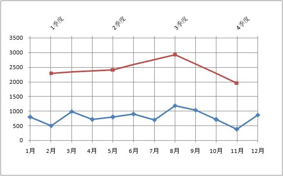 appleyufz 发表于 2012-9-13 18:04 双纵轴图做过吧?双横轴也同样道理,下边横坐标是月度数据,上边横坐标轴是季度数据,楼主问的就是这个!