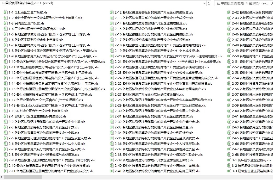 【免费】中国投资领域统计年鉴2023(excel格式)