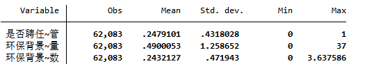【环保背景高管数量】将当年企业高管团队中具有环保背景高管的人数进行加总得到环保背景高管数量。