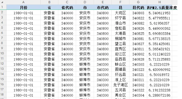 1980-2022年全国各省、市、县(区)PM2.5浓度面板数据