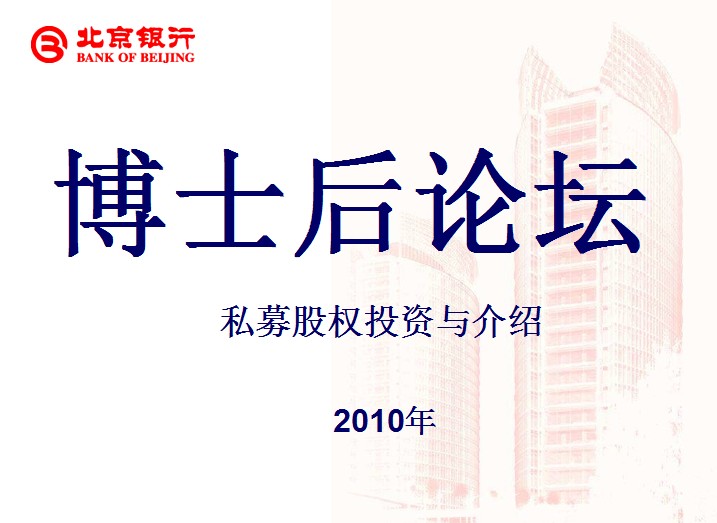 私募股权投资介绍及讨论--北京银行博士后论坛.ppt