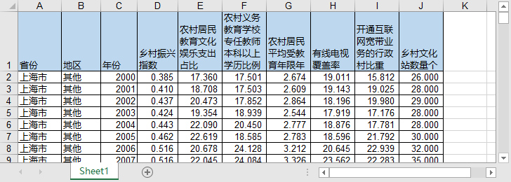 省份 地区 年份 乡村振兴指数 农村居民教育文化娱乐支出占比 农村义务教育学校专任教师本科以上学历比例 农村居民平均受教育年限年 有线电视覆盖率 开通互联网宽带业务的行政村比重 乡村文化站数量个