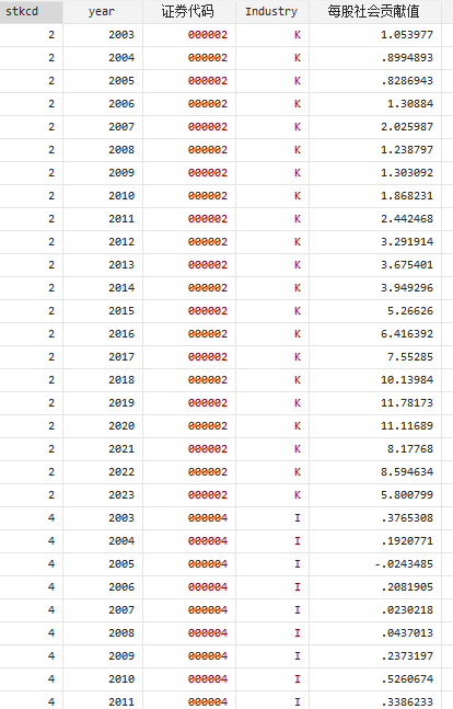 A股上市公司每股社会贡献值2003-2023年 最新版 送原始数据+stata代码