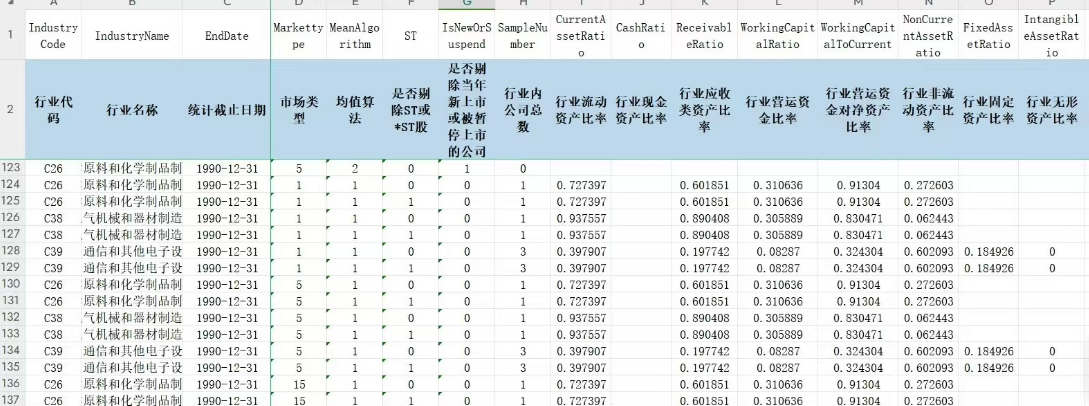 WorkingCapitalRatio [行业营运资金比率] - 计算公式为:营运资金比率=(流动资产合计-流动负债合计)/(资产总计),当计算单个公司的指标时,若分母未公布或为零,该公司指标记为NULL。当“行业资产总计”(分母)等于0时,该行业指标记为NULL。