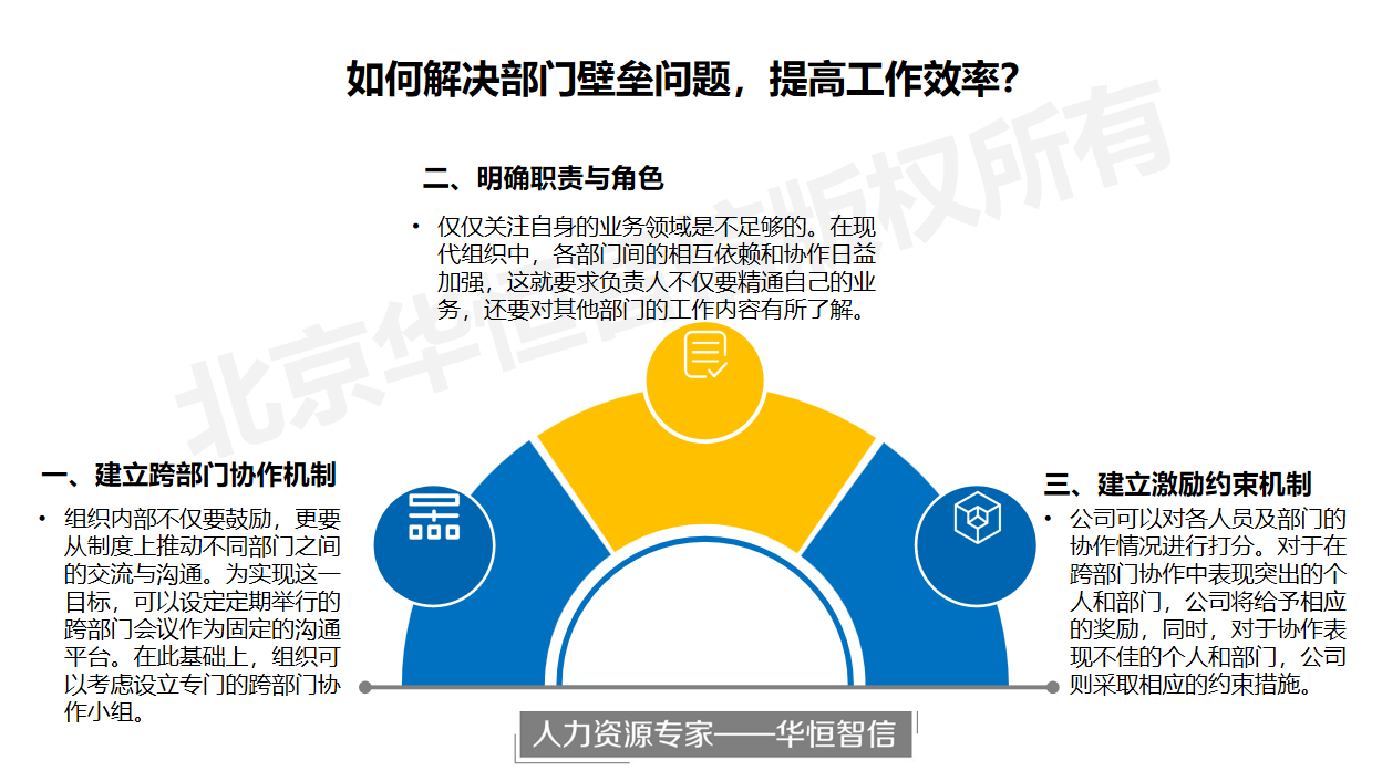 推诿现象的存在,往往源于职责不明确、沟通不畅或员工对工作的责任感不足。那么应如何解决呢?对于国有企业来说,应该如何推到“部门墙”,提高工作有效性呢?华恒智信根据多年服务国有企业积累的经验,认为可以从以下几方面入手。