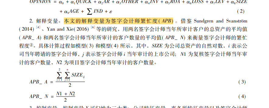 用两名签字会计师当年所审计客户的总资产的平均值(APB_A)和两名签字会计师当年所审计的客户数量的平均值(APB_N)来衡量签字会计师的繁忙程度。