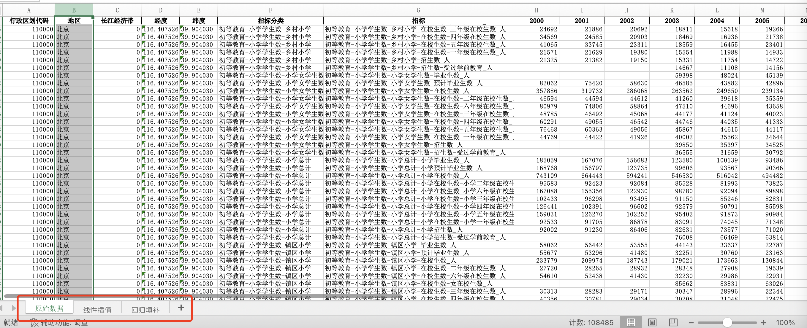 数据格式:Excel数据文件包含原始数据(由于多年度指标不同存在缺失值)、线性插值、ARIMA填补(无缺失)三个版本,提供您参考使用。其中,ARIMA填补无缺失值。
